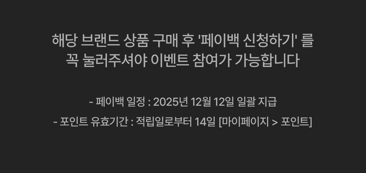 1. 행사기간 동안 상품을 구매하고 페이백 신청 버튼을 클릭한 정회원 대상으로 지급 가능합니다.
